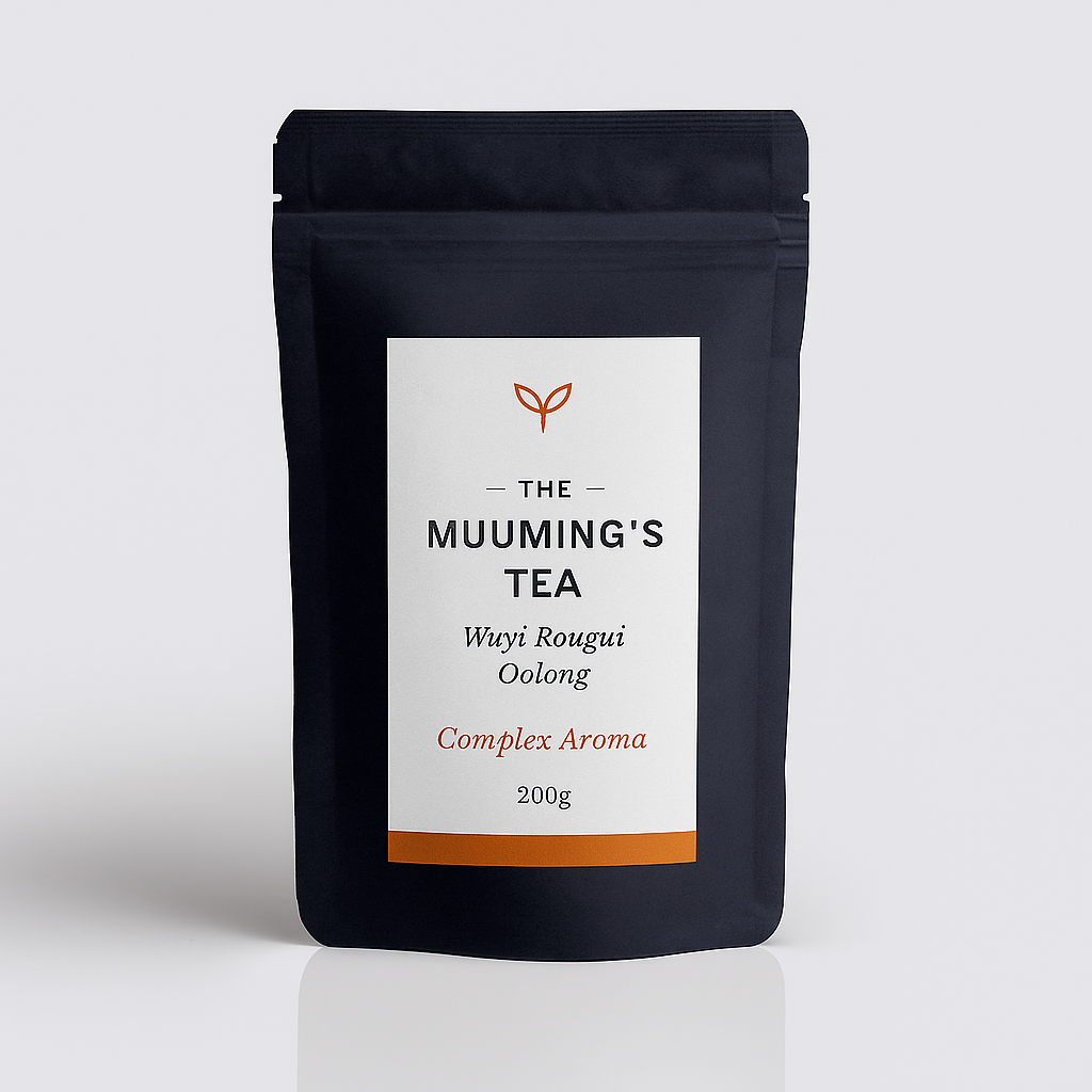 The tea is full-bodied, vibrant, and penetrating, with a slight numbing sensation on the tongue, strong throat resonance, and a quick, lingering sweetness. It perfectly embodies the bold, structured style of classic Wuyi Rougui—“heavy in body, bright in aroma.”