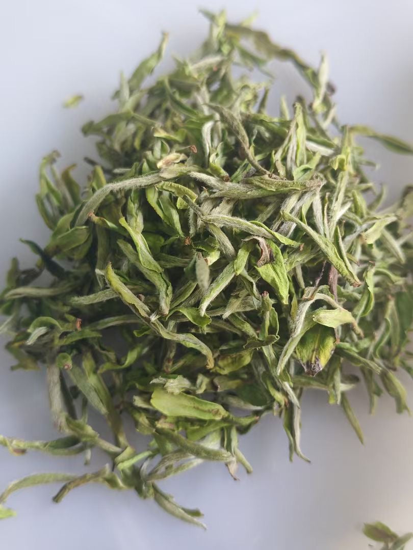 Made from early spring one-bud-two-or-three-leaf pickings, the tea is crafted without pan-firing or rolling, preserving its natural nutrients and living essence. After three years, it brews into a clear golden liquor with a smooth mouthfeel, a soft sweetness, and almost no bitterness or astringency.